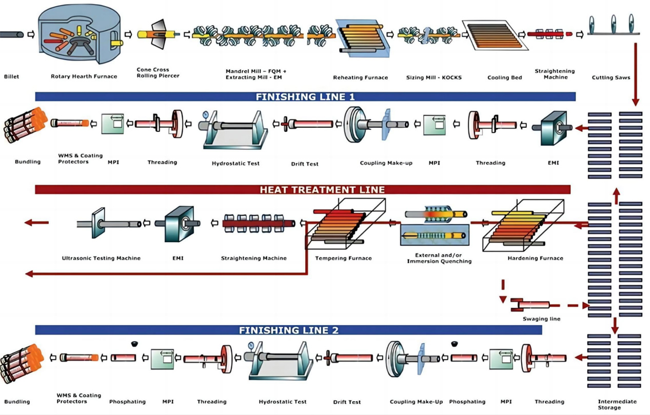 Casing is used to protect the boreholes that have been dug into the ground for oil. Used same as the drill pipe, oil well casing pipes also allow the axial tension pressure, so high-quality high-strength steel is required. OCTG casings are large diameter pipes that are cemented into the borehole.