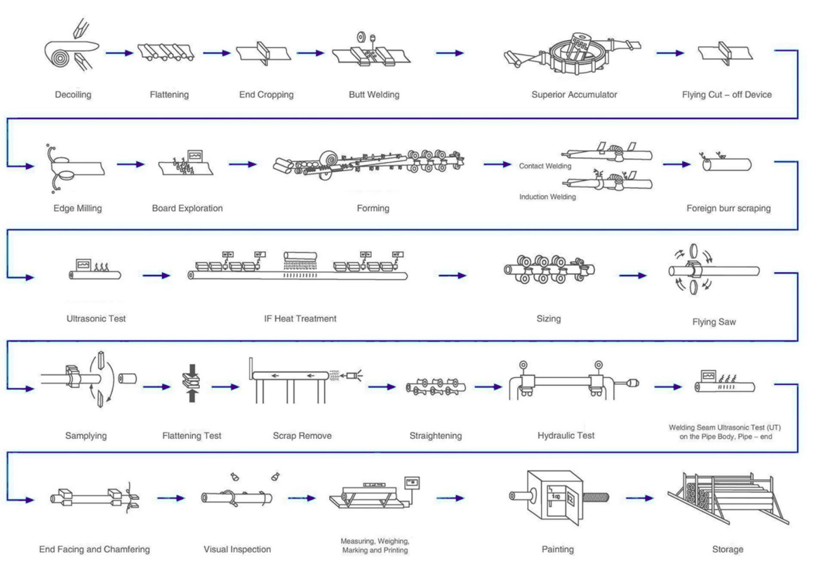 Raw Material Checking, Chemical Analysis, Mechanical Test, Visual Inspection , Tension Test, Dimension Check, Bend Test , Flattening Test, Impact Test, DWT Test, NDT Test, Hydrostatic Test, Hardness Test…..